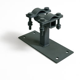 Конструкция и материалы:Изготовлен из прочной оцинкованной стали толщиной 3 мм, устойчивой к коррозии и неблагоприятным погодным условиям. Конструкция держателя включает монтажную пластину с отверстиями для крепежа к стене и регулируемый хомут, который надёжно фиксирует мачту диаметром до 50 мм. Защитное цинковое покрытие увеличивает срок службы изделия.